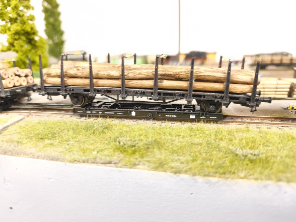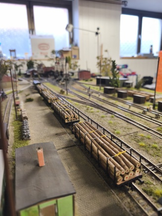 Der komplette Zug mit 4 Rollwagen und Begleitwagen, fehlt nur noch eine Mallet von Fa. Tillig oder 99 5633 der Fa. Weinert alles andere dürfte zu schwach auf der Brust sein.