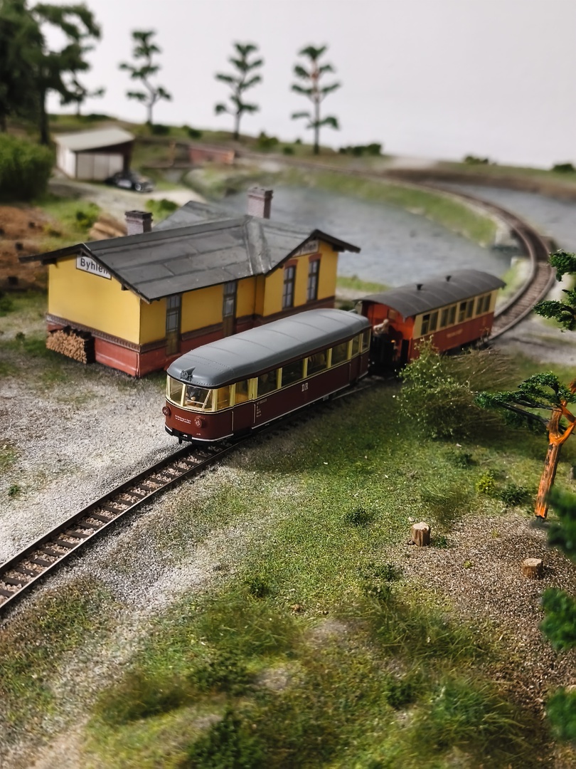 <Vt mit Beiwagen am Bf Byhlen
